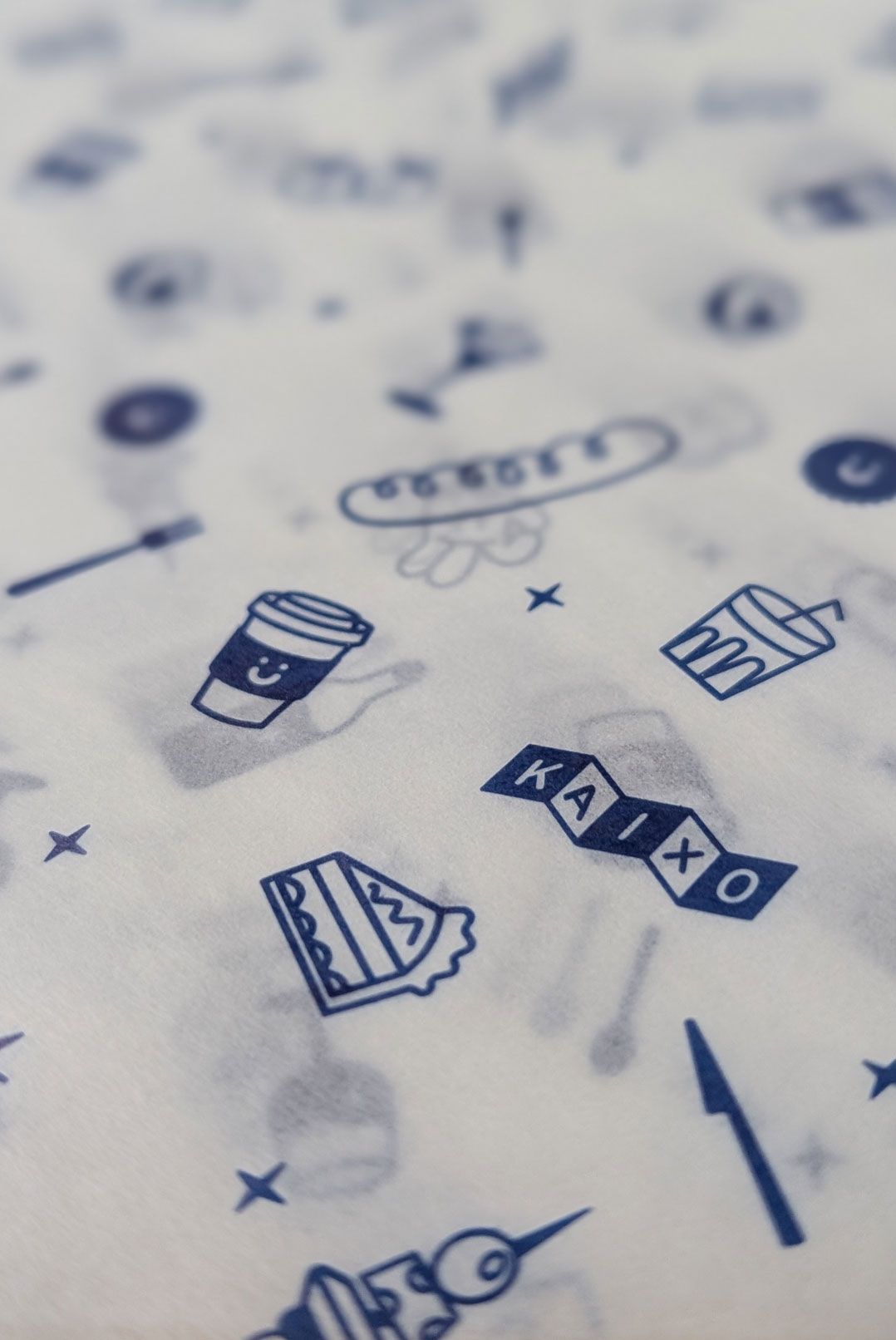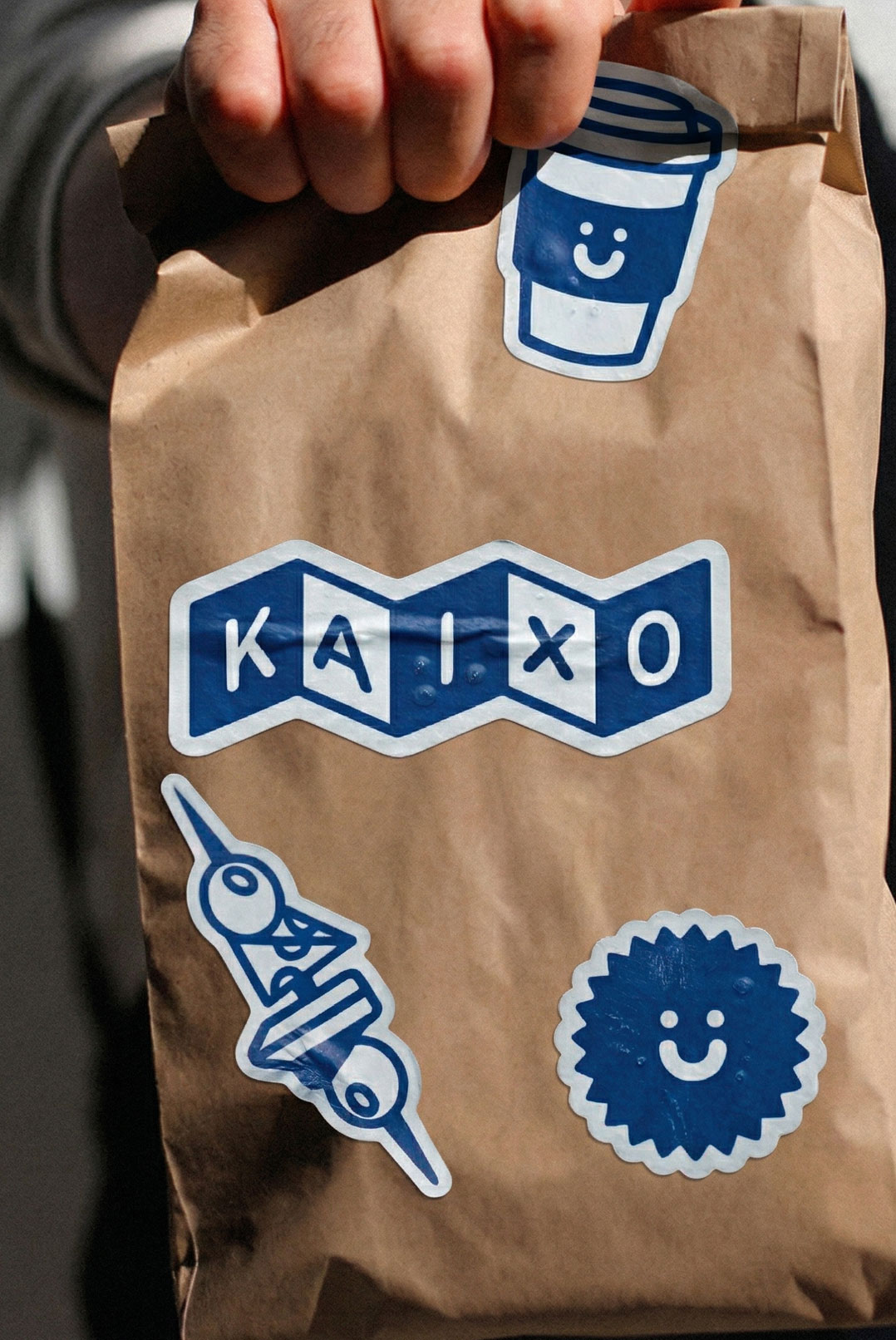 El universo gráfico recoge pequeños elementos del día a día del local, como tostadas, café para llevar, copas de vermut, tartas, gildas o el propio “kaixo”, reforzando la idea de un proyecto casero, cercano y ligado a lo local, donde se cuida tanto la comida como la forma de comunicarla.